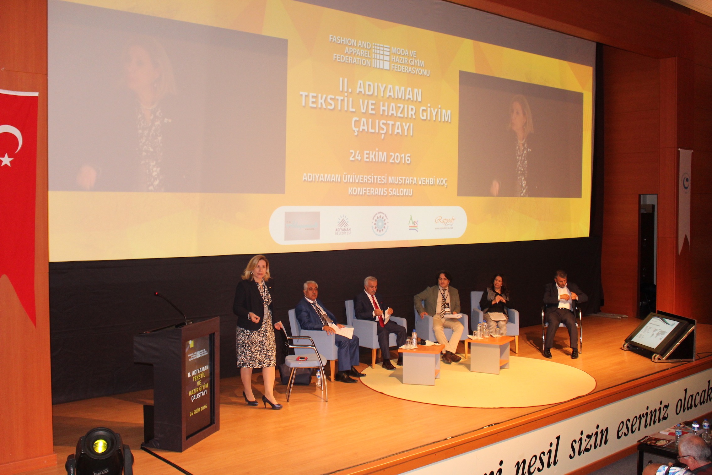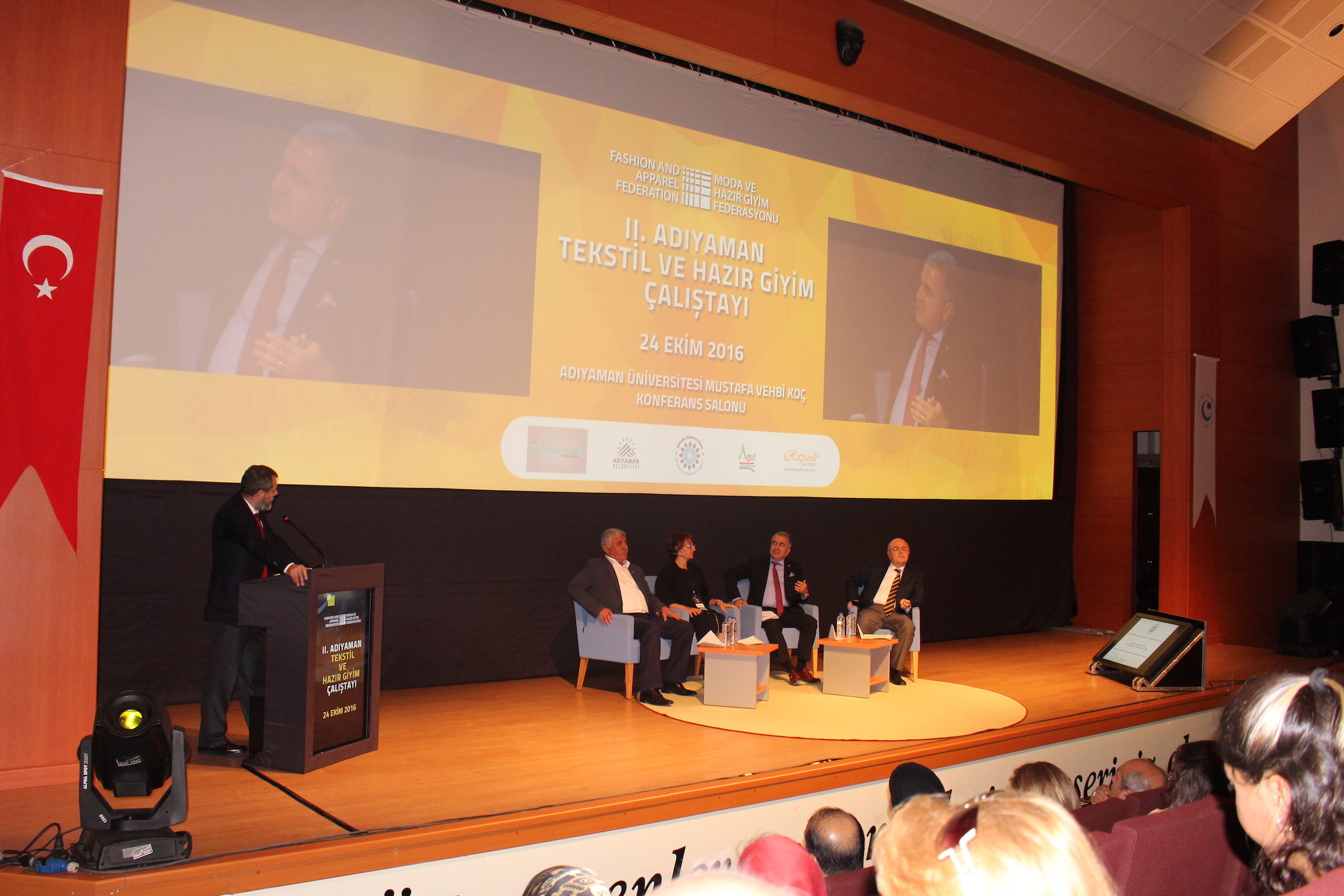 MHGF Başkanı Hüseyin Öztürk ise sektörlerin gelişmesi için sivil toplum kuruluşlarına büyük sorumluluklar düştüğünü belirterek, “Sanayici 7 milyarlık dünyada rekabet ediyor. Maliyet faktörlerine özen göstermeliyiz. Ama asla insanlarımızı bir maliyet unsuru olarak görmemeliyiz. Daha çok düşünen, üreten bir yapı oluşturmamız gerekiyor. Adıyaman hazır giyim sektörü için çok önemlidir. Mermer, cam ve seramik, otomotiv gibi ihracatı yüksek olduğu belirtilen sektörlerin kilogram fiyatı düşüktür. Tekstil ve hazır giyimin kilogram fiyatı ise yüksektir. Avrupa’nın zorunlu olarak hazır giyim alması gereken rakam, ihtiyacının yüzde 20’sidir. Hızlı servis, maliyet, tasarım, açık hesap gibi avantajlarla bile biz Avrupa’nın ihtiyacının yüzde 12’sini karşılıyoruz. Kendimizi geliştirirsek ürün nitelikleşir ve katma değer yükselir” dedi.